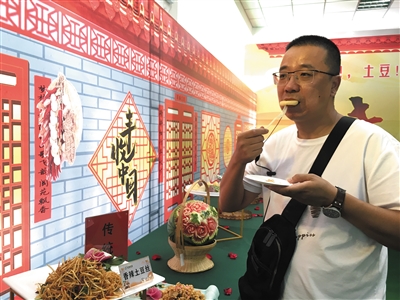 丰收节是农业的嘉年华,展示着农民辛劳的成果。在会场舞台前端,中加106、中加N3、大西洋等众多不同类型的种薯摆放整齐,外表看起来平平无奇,实则科技含量满满,有适合做沙拉、拌凉菜的,有适合炸、炒、炖、煮的,还有能生吃的。在中加农业公司美食展示品鉴区,土豆曲奇、巧克力黄金薯、龙眼土豆丸……用土豆缔造的全营养盛宴,神奇美味,备受追捧。“这里土豆这么优质,今天算是开了眼界,收获满满。”来自黑龙江省的打工者李贵昌笑着说。同样收获颇丰的还有来现场订购种薯的采购商们,“我们合作社已经连续5年从中加农业公司采购种薯了,四子王旗的土豆在南方市场很受欢迎,适应性强,产量高,亩产利润2000元左右。”从深圳市赶来订货的周建兴给记者算了一笔账。