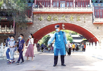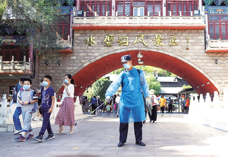 坚守岗位过中秋 9月19日,在乌鲁木齐水磨沟公园内,防疫工作人员进行消杀工作。当日是中秋假期第一天,新疆乌鲁木齐消防、交警、防疫等部门的工作人员忙碌在工作岗位上。 新华社记者 王菲 摄