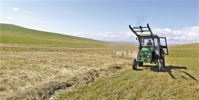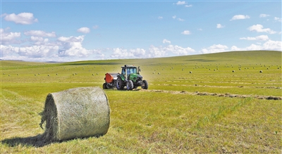 在陈巴尔虎旗东乌珠尔苏木海拉图嘎查牧民其乐格尔家的近万亩草场上,打草工正开着机械搂草、捆草。以打草为业的何风祥介绍说,今年这里的草好,一亩半草场就能打一捆草(500斤左右),单位面积产草量是以前的4倍左右。“随着机械化水平的提高,如今打草、捆草、拉运都已实现机械作业,不仅大大提高了打草效率,也减轻了牧民的劳动强度。今年草场能打草6000捆左右,不但不用买草过冬,还可以卖些牧草挣钱。”其乐格尔的脸上不无喜悦。