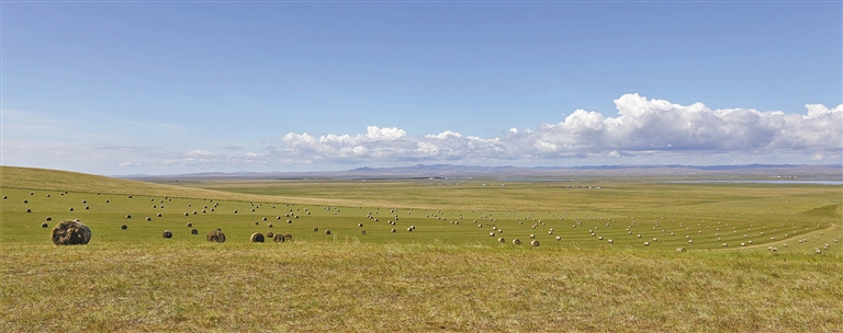 9月,牧草收获的季节。散落在草原上的一个个草捆,成为呼伦贝尔大草原别样的风景。