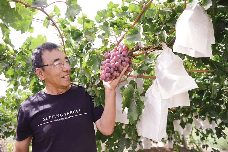 “2020年,我们注册了自己的商标。今年,乌海的葡萄有了身份证——市农牧局产业科给每串葡萄戴上乌海葡萄地理标志的标签。现在,我们的葡萄产业做得更有信心了。”王胜云说,“为了让乌海的葡萄走向全国,我们今年还建设了冷链物流,北京、天津的人们也能吃到当天采摘的新鲜地道的乌海葡萄。”