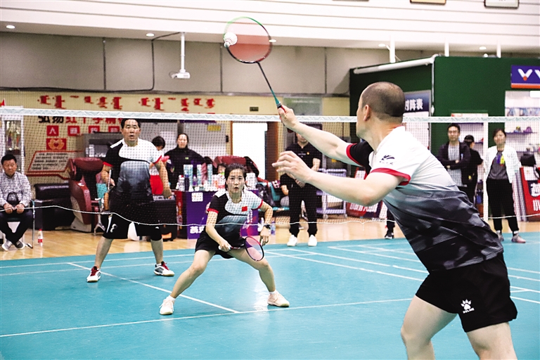 9月30日,选手们在比赛中。为庆祝中华人民共和国成立72周年,丰富广大职工的精神文化生活,内蒙古日报社举办了“联手挥拍庆国庆”男女混双羽毛球比赛,全社有33支代表队参赛。选手们表示,比赛进一步增强了职工的凝聚力与向心力,会以更加昂扬的斗志、全力以赴做好本职工作。