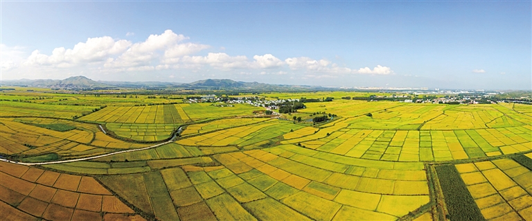 又是一年丰收时,兴安大地尽欢歌。希望的田野上,金黄色的稻穗随风轻舞,黄灿灿的玉米点缀大地,红彤彤的果实挂满枝头……一幅“农”墨重彩的乡村丰收新画卷在兴安大地铺展开来。