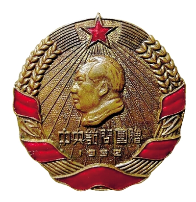 笔者收藏的这枚“中央访问团赠”纪念章,铜胎珐琅,章体鎏金有部分氧化,圆形,小型章,通径35毫米。纪念章上方是一颗鎏金描边的红五角星,象征闪闪红星照耀祖国大地。边缘是红绶带包着黄灿灿籽粒饱满的象征农民阶级的麦穗环绕,中间浮雕着金黄色的毛主席侧面头像,头像下面镌刻“中央访问团赠”繁体汉字和“1952”年代,背景是五角星闪烁的金灿灿的光芒。“中央访问团赠”纪念章,见证了党和政府对少数民族的关怀,见证了民族团结进步,加之发行年代较早,发行数量有限,更显得弥足珍贵。