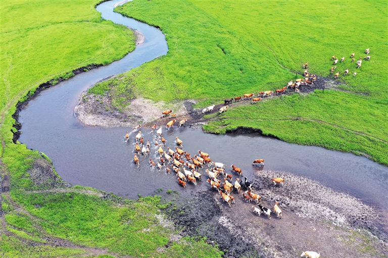 兴安盟有连绵起伏的山峦,蜿蜒曲折的河流,大片的草场和成群的牛羊。毕力格 摄