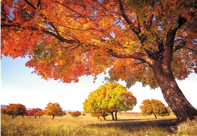 层林尽染,五彩斑斓的五角枫景区。包天鹰 摄