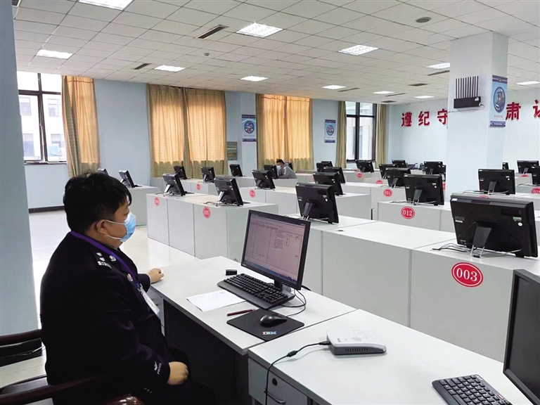 10月28日,驾驶人吴先生一个人参加科目一考试。为了疫情防控的需要,呼和浩特市公安局交通管理支队车管所于本月25日起暂停了全市机动车驾驶人培训、考试工作,近日,在接待群众时,了解到吴先生的驾驶证即将逾期,在确保防疫安全的情况下,车管所特事特办,为他开通了专场考试。连日来,呼市车管所认真开展“我为群众办实事”实践活动,努力为群众办实事、解难题,进一步提升了群众的满意度。 武志杰 摄