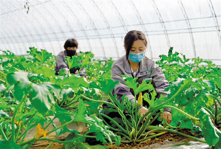11月1日,呼和浩特市恬静赛音种植合作社的工作人员正在采摘西葫芦。疫情防控期间,呼和浩特市的科技特派员在做好疫情防控的同时,积极投入到农事劳动中,力保农产品及时、稳价供应。本报记者 孟和朝鲁 王鹏 摄
