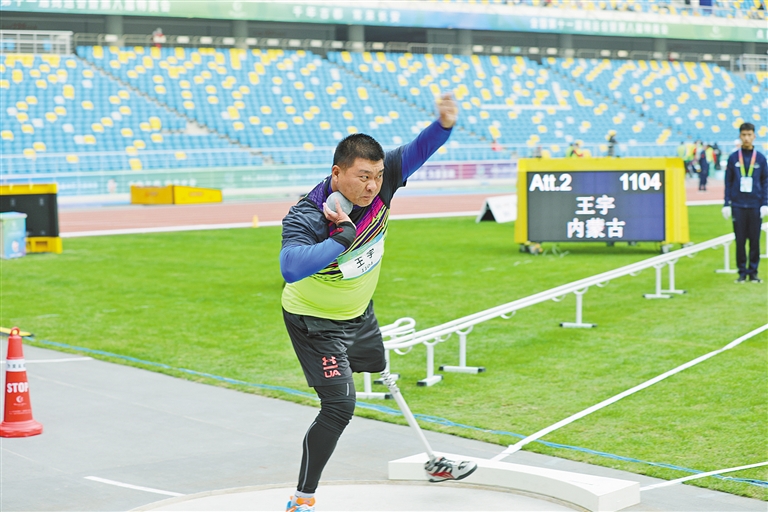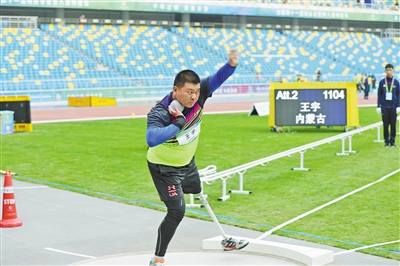 37岁的“老将”高永强已是第五次征战全国残特奥会,曾连续两次夺得链球项目冠军后,上届的比赛他仅收获了铜牌。这一次,他在6次投掷中4次打破全国纪录,不断刷新自己的最好成绩,霸气夺金。