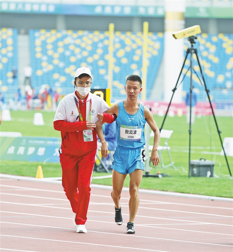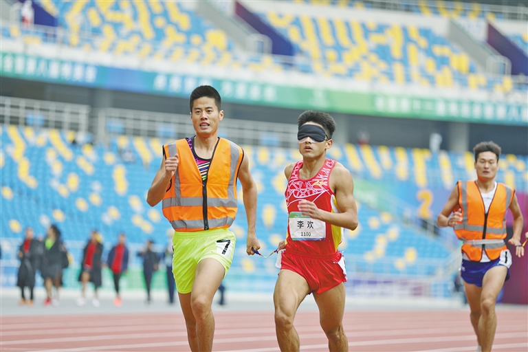 视障运动员李欢患有过敏性哮喘,每一场比赛对他来说都是一场硬仗,但每一次他都坚持到最后一刻,绝不放弃。比赛中,他和领跑员杨爱瑞共同夺得了男子800米T11级铜牌,赢得了属于他们的荣誉。