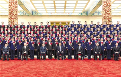上午11时15分,习近平等来到人民大会堂金色大厅,全场响起热烈掌声。习近平等走到代表们中间,同大家亲切交流并合影留念。