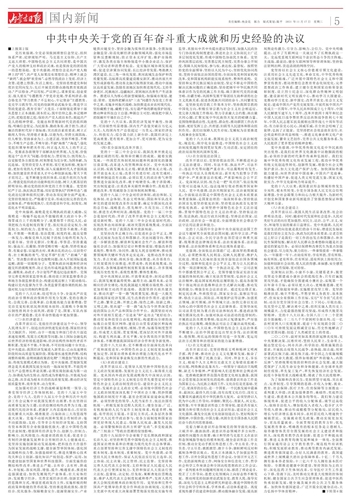 中共中央关于党的百年奋斗重大成就和历史经验的决议