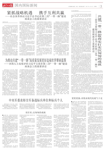 ~~~——多国人士高度评价习近平主席在第三次“一带一路”建设 座谈会上的重要讲话
