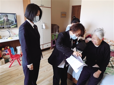 法官来到敬老院为高龄老人办理立案和授权委托手续。巴彦淖尔市临河区人民法院大力开展“我为群众办实事”实践活动,针对特殊人群提供上门立案服务。