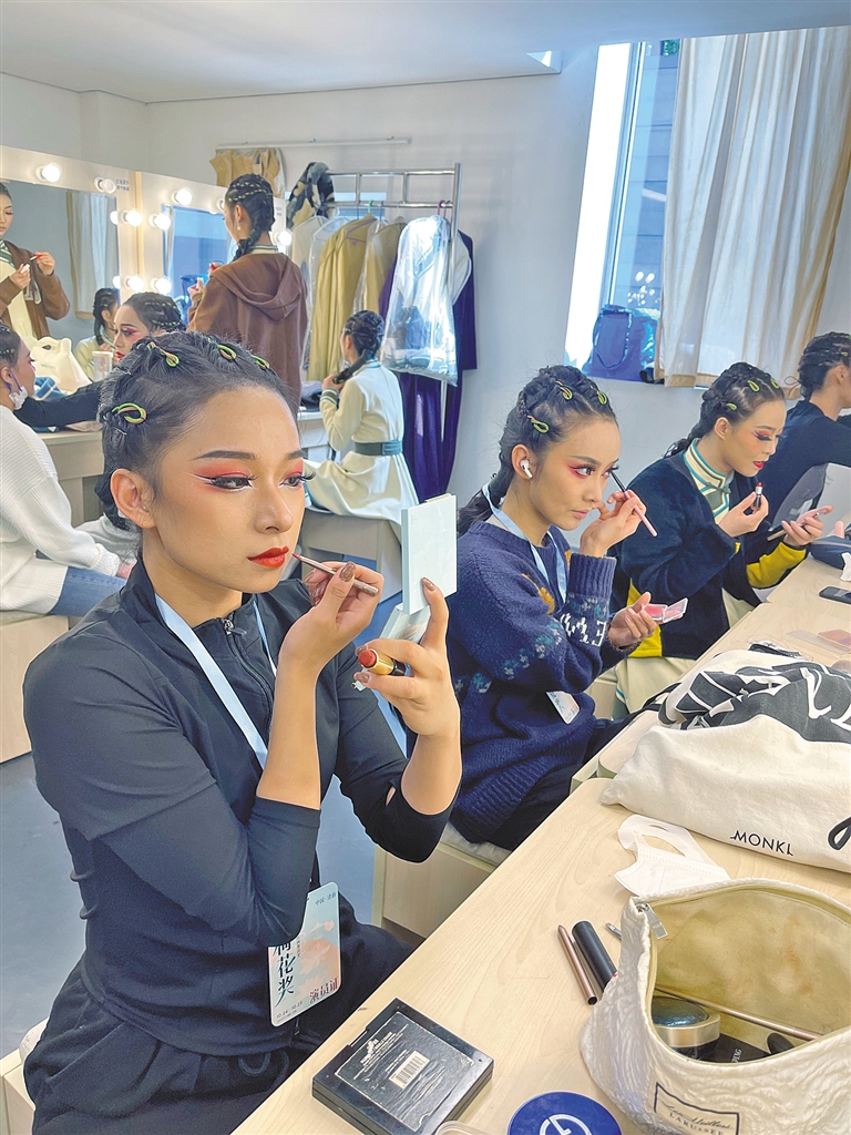 “浪漫”的背后是所有演员的辛苦付出。为塑造形象,莫日根在很短的时间减重17斤;一名女演员在彩排中被道具羊砸伤头部流血了,仍然坚持演出;几乎每一个人身上都有伤,贴上膏药继续跳……为了在“荷花奖”舞台上“最美绽放”,演员们一遍遍排练,不放过每一个动作、每一个细节。