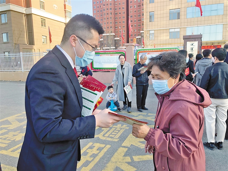 近日,鄂尔多斯市中级人民法院第一党支部“学雷锋小组”走上街头,开展志愿服务宣传活动,向群众发放《中华人民共和国民法典》宣传画册100余份,为30余人次提供了法律咨询。