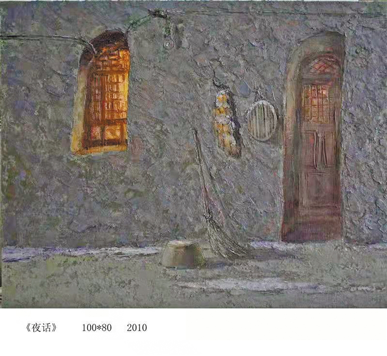 罗丹说:“所谓大师,就是这样的人:他们用自己的眼睛去看别人见过的东西,在别人司空见惯的东西上能够发现出美来”。罗丹还说:“美是到处都有的,对于我们的眼睛,不是缺少美,而是缺少发现”。赵福就是一个善于发现的人,黄河流域这些自然风光、乡村农舍,对他而言是再熟悉不过了,可他每次去,都会有新的发现。他特别善于在那些司空见惯的景物中发现动人的画面和细节,尤其那些能体现生活质感的细节,并加以认真对待。大河大山自不必说,一个农家院落,一个窑洞的门窗,都能让他发现出美来,而且画得津津有味,乐此不疲。如《黄河岸边是家乡》《托县刘宽窑子》《和林格尔春雪》《夏日老牛坡》《将军会·窗》《古城春早》《江孜街景》《米脂东门》《双墩人家》《夜话》等,他用他感性而质朴的笔触,描绘了那些生动的细节:农家晾晒的衣被,院落里的农具,窑洞门窗上的对联、窗花、积雪以及窗台上的坛坛罐罐、朴素的盆花等,这些动人的细节,为画面平添了浓郁的生活气息。如此,使他的画粗中有细、生动鲜活,在并不诱人的外表下透出生活的质感以及他的赤子真情。