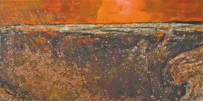 赵福出生在黄河流域土默川平原一个普通农家,纯朴的乡村民风养育了他纯朴的感情和纯朴的性格。这些画既是赵福情感的自然流露,也体现了他明确的审美追求。赵福上大学时学的是油画专业,毕业30年来,他又参加过多种绘画研修班和进修班,如中央美院丁一林与胡明哲教授的课题班、全国岩彩画高级研修班、妥木斯油画创作研修班、清华美院访问学者、著名艺术家刘永刚绘画与雕塑语言研修班等。其间他做过多种艺术题材、体裁,艺术形式和艺术语言的尝试与探索,涉及绘画(油画、水墨、综合材料等)、雕塑、陶瓷、剪纸、书法等。写实与写意、再现与表现、具象与抽象,各种风格,各种材料,技法探索,材料实验,可以说“玩”了个遍,但绕了一大圈,他又回到了“原地”。他摒弃复杂的技法,而是采用最简单、最直接、最原初、最朴实的方法,描绘黄河流域的山川风物和普通农家。而这个最简单、最朴实的方法,映照着他那颗最真诚的初心。