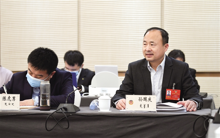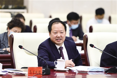 1月22日,赤峰市代表团代表凌河结合工作实际,就当地政府带头优化营商环境和统筹推进乡村振兴发展等方面提出了建议。 本报记者 金泉 摄