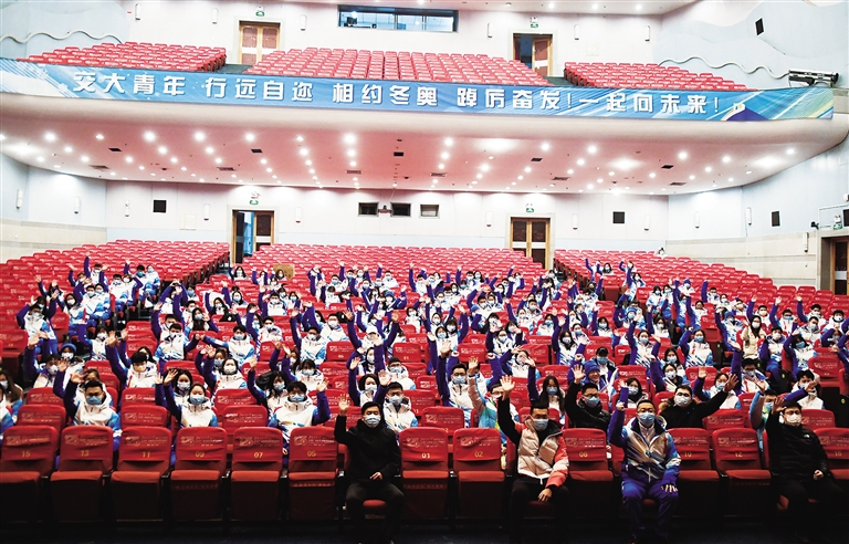 1月23日拍摄的北京交通大学2022年冬奥会和冬残奥会志愿者出征仪式现场。当日,北京交通大学首批冬奥志愿者集结出发。据了解,首批80名师生志愿者将在国家体育馆开展志愿服务工作。 新华社记者 任超 摄