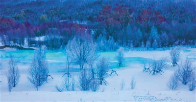 阿尔山白狼镇洮儿河畔,冰似翡翠,红柳欲燃,美景如画。 文/图 于振海