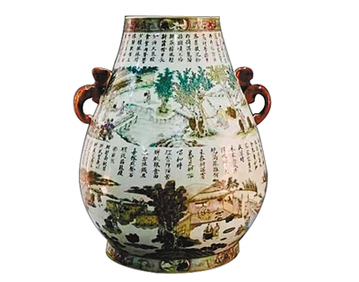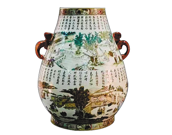 藏品:粉彩《耕织图》鹿头尊。
