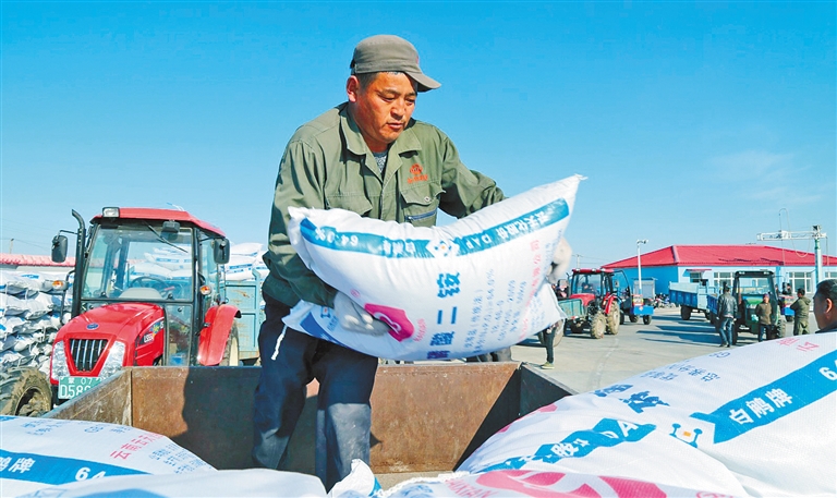 该集团提早征集各农牧场公司及种植户购肥建议,统计施肥用量、肥料种类,由大兴安岭物资石油供销总公司负责统一采购、统一价格供应,规范生产资料进货渠道,确保种植户用上质量好、价格低的优质化肥。“截至目前,已储备各类化肥19000余吨,能满足集团公司125万亩耕地使用。”物资石油公司负责人闫守泽介绍。
