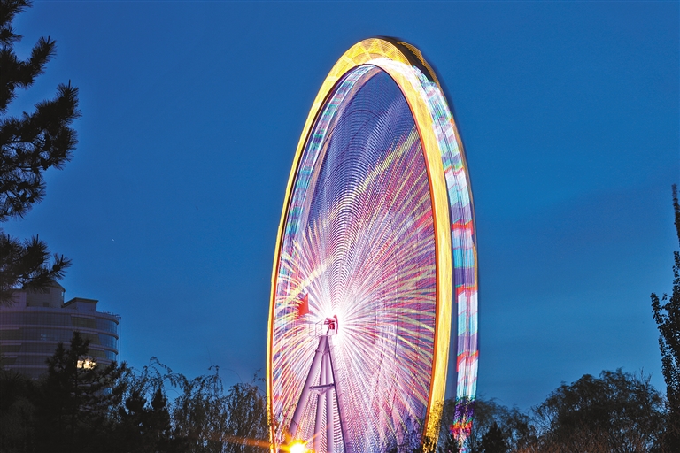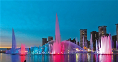 忙碌了一天的人们在夏日晚风中享受着城市夜色。绚烂的摩天轮、壮观的音乐喷泉,为安静夜空增添了动感旋律;大街小巷在路灯的映照下,宛如一条条金丝带,守护着人们回家的路。