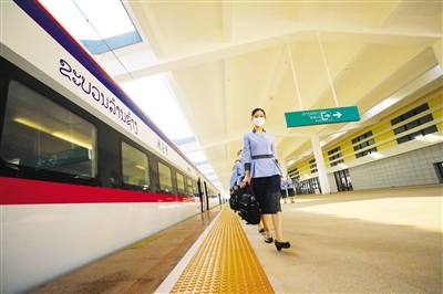 5月24日,在老挝中老铁路万象站,老中铁路有限公司的乘务员在“澜沧号”动车组外准备迎接乘客。2021年12月3日,中老铁路全线建成通车,截至6月3日运营已满半年。半年间,这条铁路带动了客流、物流,为沿线国家和地区创造出新的发展机遇。中老铁路全线采用中国技术标准、使用中国设备并与中国铁路网直接连通,成为中国标准造福世界的亮眼名片。 新华社发