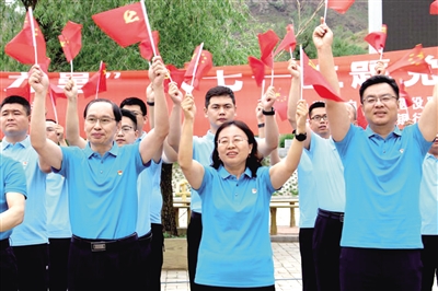 当日,在大青山抗日游击根据地司令部旧址红旗广场,伴随着优美的旋律,全体党员干部手中挥舞着鲜红的党旗、国旗,齐声高唱《唱支山歌给党听》,整齐的队伍组成了一道亮丽的风景线,激情奋进的歌声在空中飘荡。随后,在自治区退役军人事务厅党组书记、厅长常志刚的带领下,党员干部坚定地举起右手,再一次重温入党誓词,“我志愿加入中国共产党,拥护党的纲领,遵守党的章程……”铿锵有力的誓言,宣示着坚定不移的理想信念和对党的无限忠诚。