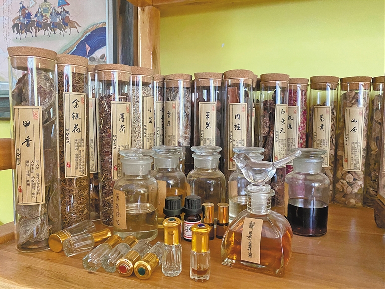 经过传承和创新的古法制香技艺,是把蒙医药、藏医药和中医药学都融合在一起。古法制香技艺有一个熟制的过程,除了炒、煎、蒸、煮、灸、焖这些方法之外,它还有一个很重要的步骤——发酵,这可以让香药达到一定的保健作用。相比于生药入香,熟化过的香味道比较柔和。“经常使用,可以通畅肺腑、静气凝神、调理睡眠、驱除蚊虫、净化尘霾、通鼻开窍,对养生保健、调理身体有一定功效。”敖云告诉记者。