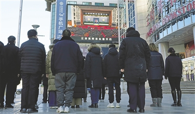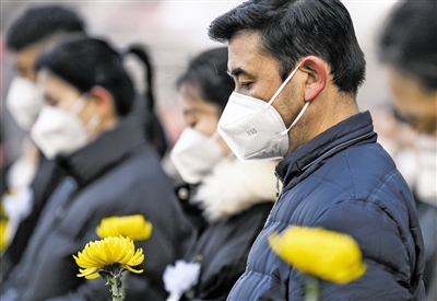 | 这是在新疆乌鲁木齐市街头,群众肃立默哀。 新华社记者 王菲 摄 |