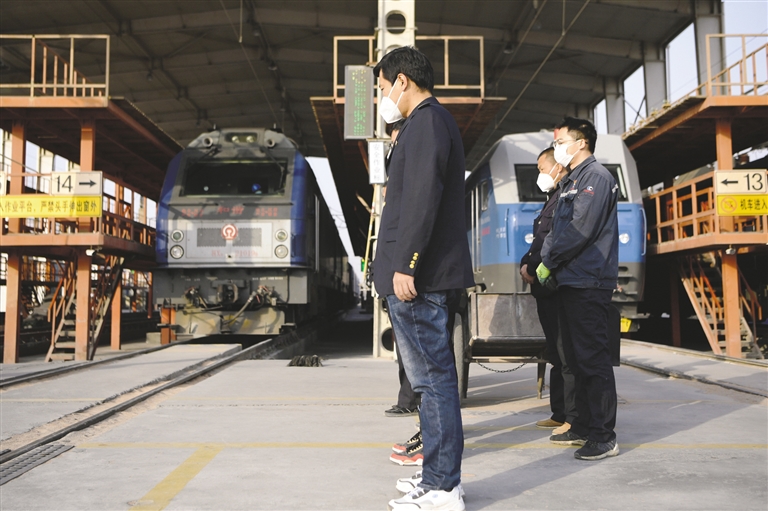 | 这是在中国铁路兰州局集团有限公司兰州西机务段东整备车间,机车鸣笛,干部职工肃立默哀。 新华社记者 陈斌 摄 |