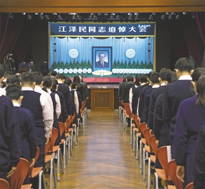 | 12月6日上午,中共中央、全国人大常委会、国务院、全国政协、中央军委在北京人民大会堂隆重举行江泽民同志追悼大会。举国上下,各族人民沉痛悼念江泽民同志。这是在北京王府井大街,群众肃立默哀。新华社记者 鞠焕宗 摄 |