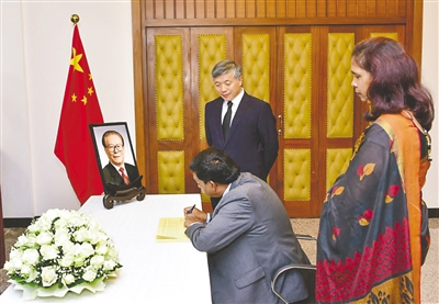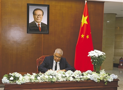 | 12月2日,毛里求斯总理贾格纳特在中国驻毛里求斯大使馆吊唁江泽民同志。 新华社发(中国驻毛里求斯大使馆供图) |