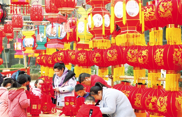 2月2日,山东省邹平市黄山街道崔家社区居民在组装各式红灯笼。元宵佳节将至,各地群众在丰富多彩的民俗活动中感受祥和喜庆的节日氛围,迎接元宵节的到来。 新华社发