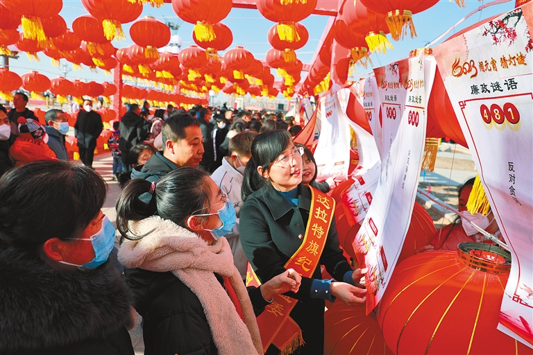 元宵佳节期间,鄂尔多斯市达拉特旗纪委监委举办“廉政灯谜猜猜猜”活动,将廉政宣传和传统猜灯谜活动有机结合,营造清廉、祥和的节日氛围。