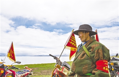 作为三江源国家公园的一名生态管护员,尼玛扎西每天在放牧自家牛羊的同时,也承担捡拾垃圾、巡护湖泊草场、巡查和保护野生动物等职责。