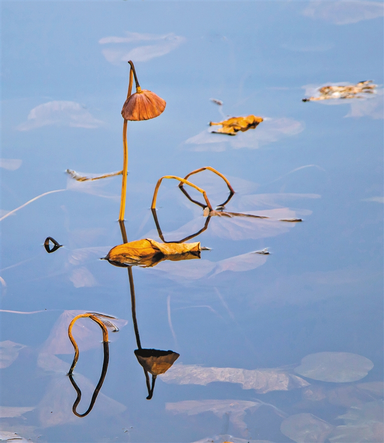 通辽市植物园,冰洁似玉,莲蓬低垂,唯美静谧。 文/图 刘千祥