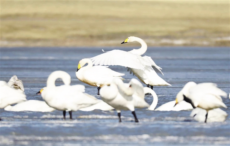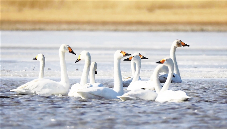 晶晶忍不住感叹:“我和盈盈每次南飞或北迁,都要在沉湖‘打卡’,这个城市湿地已变成了小天鹅的‘会客厅’。前些年,这里可不好玩,用人类的话说,它‘曾经满目疮痍,如今万鸟翔集、水草丰美’。”