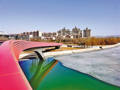 呼和浩特市小黑河,绿水红桥,相映成趣。