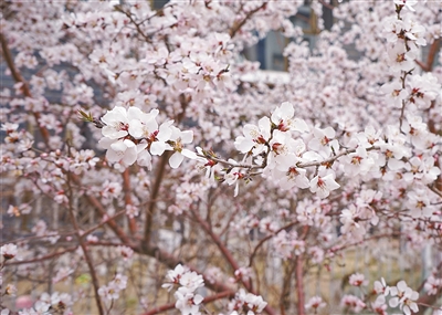 乌海市一小区内,桃花竞相开放。 文/图 柴心照