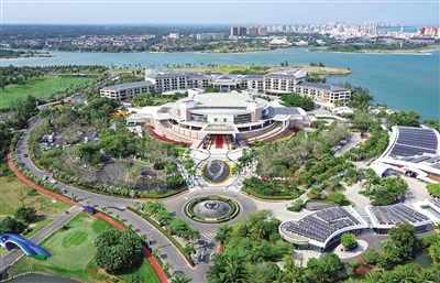 3月24日拍摄的博鳌亚洲论坛国际会议中心(无人机照片)。 新华社记者 郭程 摄