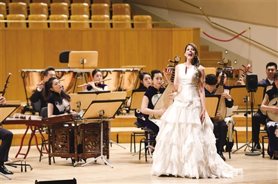 3月27日,西班牙歌唱家马斯瑅在开幕音乐会上演唱《我爱你中国》。中国西班牙文化和旅游年27日在西班牙首都马德里开幕。当晚在西班牙国家音乐厅举办了中西文旅年开幕式及音乐会。新华社记者 孟鼎博 摄