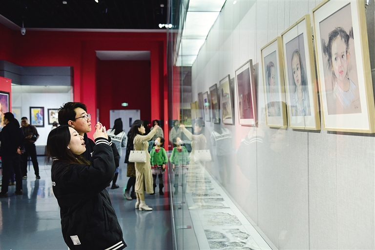 4月6日,观众在内蒙古美术馆参观。当日,“内蒙古师范大学美术学院教师作品展”在内蒙古美术馆开展。本次展览呈现了部分曾经在内蒙古师范大学美术学院任教和现在岗教职工的写生和创作170余幅。 本报记者 王磊 摄
