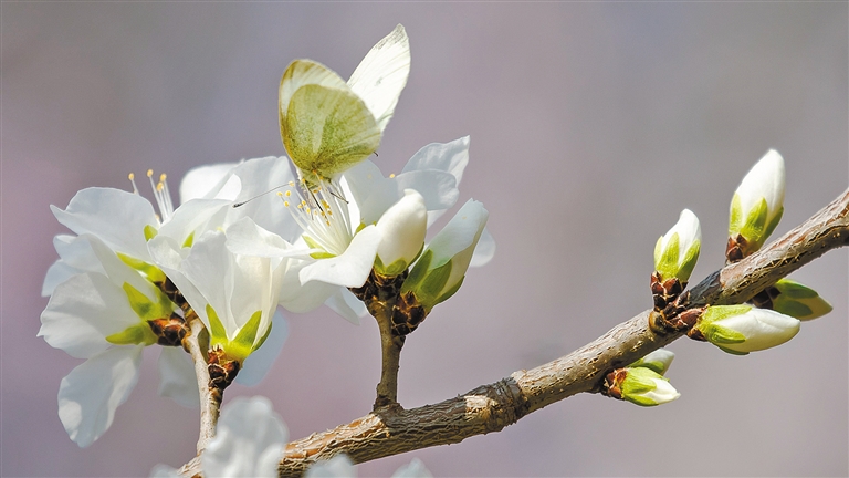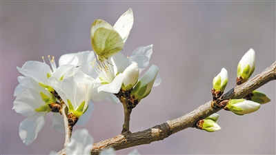 开鲁县白塔公园,一只蝴蝶在花间吸食花蜜。 文/图 勾义杰