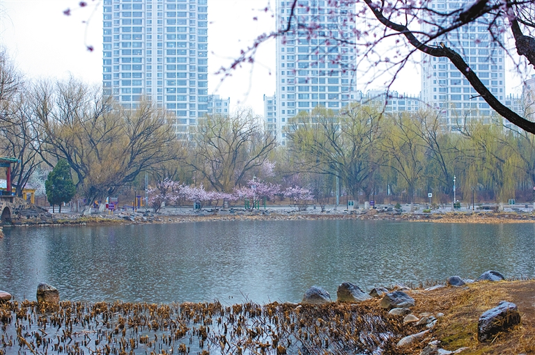 呼和浩特市满都海公园,春水微澜,桃花怒放,柳丝如烟,美不胜收。文/图 马世宏