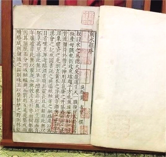 《水经注》完成于1400多年以前,当时雕板印刷尚未出现,书籍的流传通过传抄实现。《水经注》写成后不久,郦道元遇害,这部著作有几种版本已不得而知。襄阳市图书馆珍藏的这部《水经注》是明嘉靖时期黄省曾刻本,2014年入选第二批国家珍贵古籍名录。