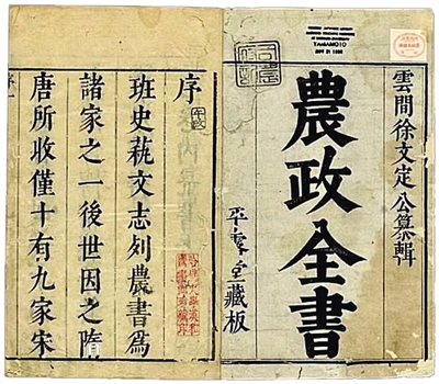 徐光启的《农政全书》成书于明朝万历年间,是中国古代五大农书之一,集前人农业科学之大成,总结了清代之前的农业科学技术。