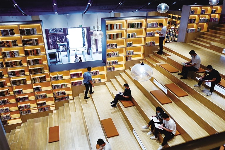 “平均每天有五六百人来这里借书、看书,月均借阅量1.5万册。我们下班时间是晚上8点半,但有的读者还是舍不得走,转战到旁边的‘24小时图书馆’。”馆长鲍丹说。
